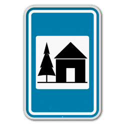 (droite) Signal de direction à proximité des équipements et établissements publics ou d'intérêt général
