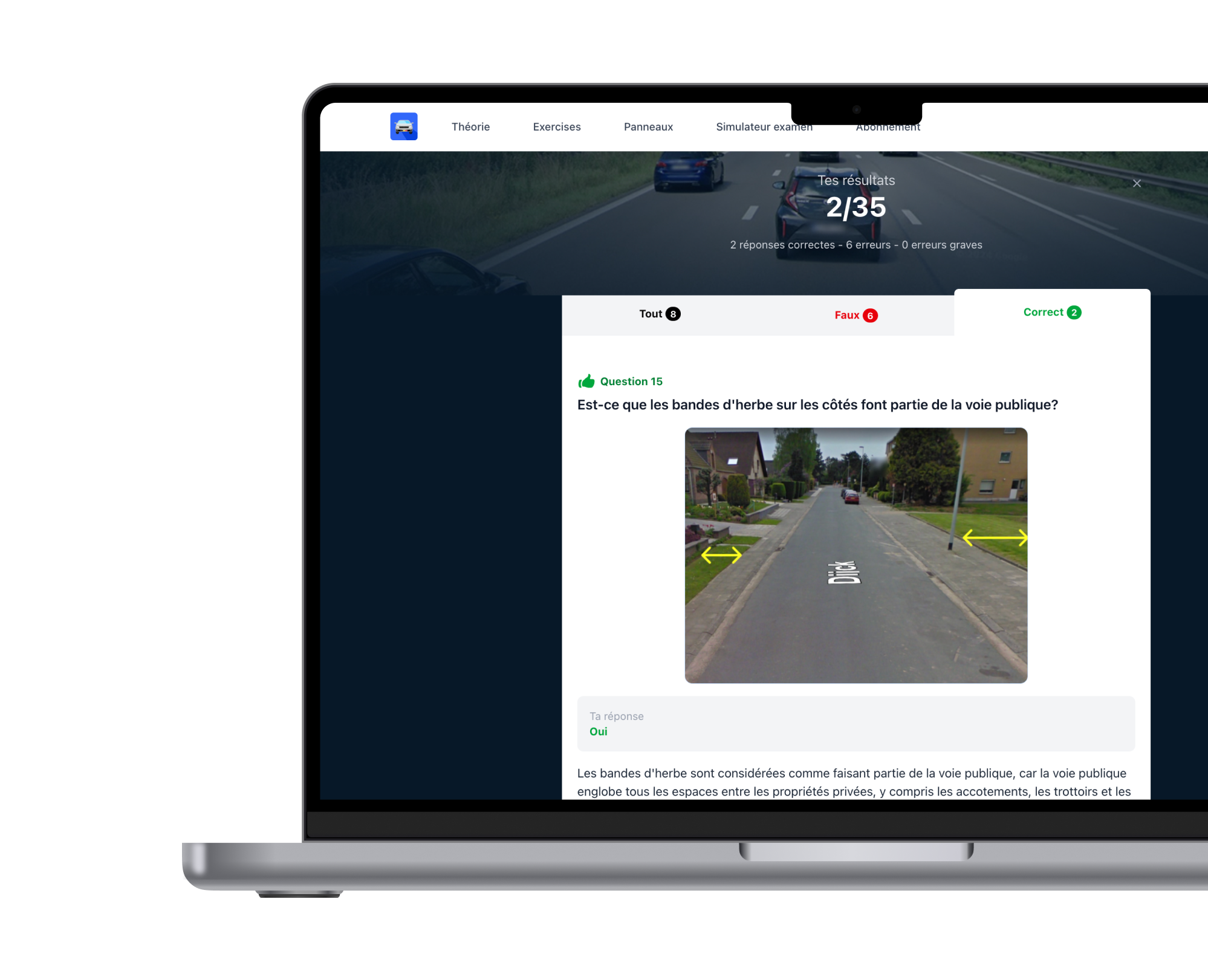 Fini les livres ennuyeux ! Que ce soit pour ton examen théorique auto: chez nous, tu apprends en ligne grâce aux meilleurs examens d'entraînement. Où et quand tu veux, sur n'importe quel appareil.